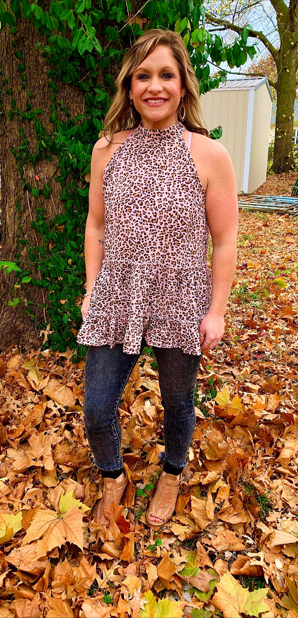 Plus Size Mauve Button Down Ruffle Neck Sleeveless Blouse